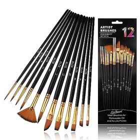 Pinsel Set, 12 Stück Aquarellpinsel Künstlerpinsel Schwarz Acryl Feine Pinsel Borstenpinsel Pinselset Ausschreibung Haarpinsel