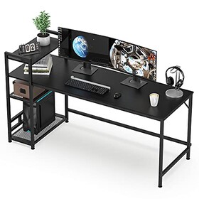 HOMIDEC Schreibtisch, Computertisch mit Bücherregal, Studiencomputer-Laptoptisch mit 4 Tier DIY Lagerregalen Schreiben Tisch fü