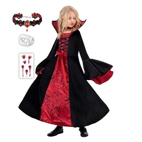 Funnlot Vampir Kostüm Mädchen Gothic Halloween Kostüm Kleid mit Vampir Zähne Kinder Karneval Fasching Kostüme Cosplay M