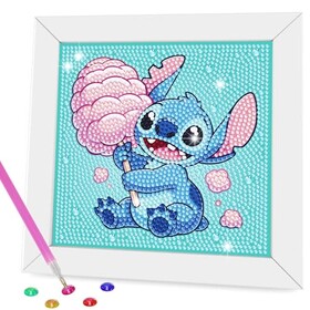 5D Diamond Painting Kinder mit Rahmen, Niedliche Stitch DIY Diamant Mosaik Set für Anfänger, Wanddeko fürs Kinderzimmer, Kreati