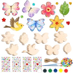98 Stück Holz Bastelsets Kinder ab 4 5 6 7 8 9 Jahre, Basteln Kindergeburtstag , Kreativ Geschenke für Mädchen, Geburtstag Deko