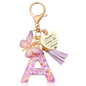 Anruzon Schlüsselanhänger Mädchen - Buchstabe Schlüssel - Anhänger Schmetterling Schlüsselanhänger - Einschulung Geschenk - Mit