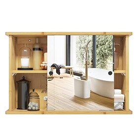 EUGAD Spiegelschrank für Bad, Badezimmerschrank mit Spiegeln, hängender Badschrank mit Schiebetüren, Hängeschrank für Badezimme