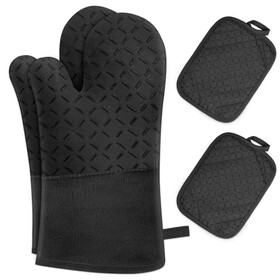 MILcea Ofenhandschuhe Topflappen Topfhandschuhe 4er Set - Ofenhandschuhe Hitzebestaendig bis 300°C, Rutschschutz, Verlängern, W