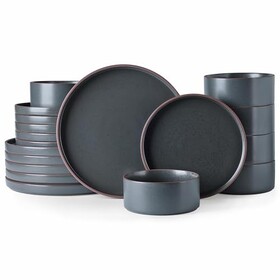 LeRatio Geschirrset für 6 Personen, 18-tlg Steingut Geschirr Set, Keramik Kratzfestes- Schüssel- und Teller-Set