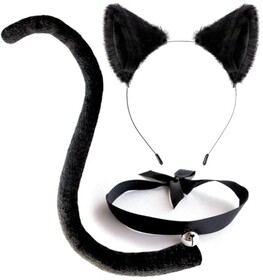 3 Stück Katzen Stirnband Damen, Katzenohren Haarreif mit Schwanz und Halsband, Katze Ohren Stirnband, für Cosplay, Karneval Par