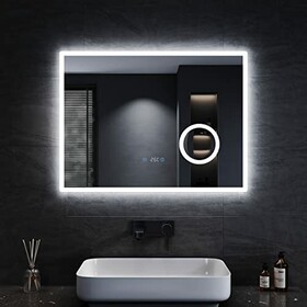 SONNI Badezimmerspiegel mit Beleuchtung 80x60 cm 3 einstellbare Lichtfarbe, Anti-Beschlag LED Badspiegel Lichtspiegel Wandspieg