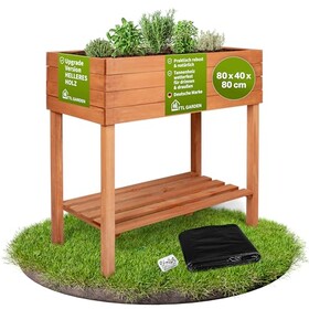 TTL GARDEN Balkon Hochbeet M 80x40x80cm aus Holz - Pflanzkasten & Blumenkasten mit Ablageboden & Folie - Tannenholz wetterfest