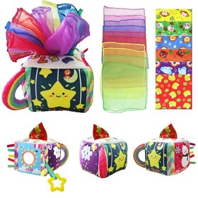 Montessori Sensorik Spielzeug ab 6 Monate - Baby Tücherbox mit Knistereffekt, 6 Bunte Schals & Motorikaktivitäten, Lernspielzeu