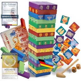 all Kids United® Holz Kinder-Spielzeug 4in1 Stapelturm; Wackelturm Stapelspiel; Montessori Lernspielzeug, Turmspiel mit 54 bunt