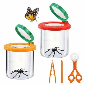 Roysmart Becherlupe Lupenbecher Set, 2 Stück Insekten Viewer, Lupendose Lupenbecher mit Pinzette, Becherlupen für Kinder, Insek