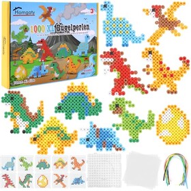 Homgaty Große 10mm Bügelperlen Dino Set, 1000 Stück XL Steckperlen mit Platten, 10 Muster und Bügelpapier, 10 Bunte Farben XL B