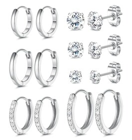 Ohrringe Silber 925 Set Für Damen - Hypoallergen Piercing Ohr Creolen Gold Kleine Ohrstecker Silber 925 Stapelbar Zirkonia Ohrs