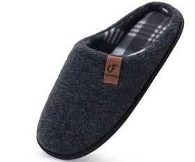 COFACE Hausschuhe Herren Filz Warme Bequem Männer Pantoffeln mit Anti-Rutsch Gummisohle für Drinnen Schwarz Größe 45
