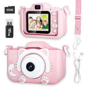 Kinderkamera für Mädchen, 3-12 Jahre, 2.0”Display Digitalkamera, Doppelobjektiv, 32GB SD-Karte, Silikonhülle, 1080P HD-Video Fo