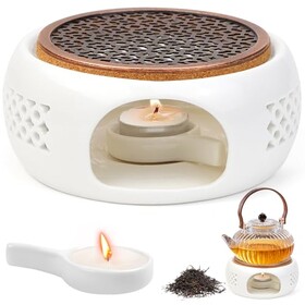 BHHTBB Stövchen für Teekanne Keramik Teekannenwärmer Teewärmer Keramik Teestövchen Weiß Stövchen Porzellan ø 15 cm, mit Korkmat