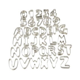 Relaxdays 10024276, silber Plätzchen Ausstecher, 36-teiliges Set, Ausstechformen Buchstaben & Zahlen, Keksausstecher Edelstahl