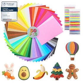 moinkerin Bastelfilz 50 Stücke Filzstoff 20X30CM Filz zum Basteln mit Nähzubehör für DIY Projekt Bunte Filz Blätter Felt Fabric