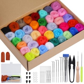 40 Farben Nadelfilz Set, 40 Farben je 5 Gramm, Nadelfilz Starter Set mit Filzwolle, Grundlegende Filzwerkzeuge für Anfänger, DI