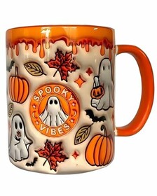 Keramische Kaffeetasse, Keramikbecher mit Kürbis Geist Cartoon Muster, Kaffeetasse und Teetasse mit Griff, personalisiertes Ges