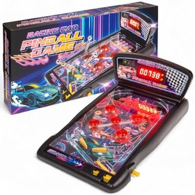 MIJOMA Rennwagen Pinball-Spiel – Elektrisches Flipperspiel mit Sound & LED, 43 x 25,5 x 17 cm, Tischspiel für Kinder, batterieb