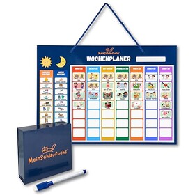 MeinSchlaufuchs® Wochenplaner Kinder - Montessori Magnettafel inkl. 250 Magnete, Aufbewahrungsbox, Kordel & Stift - beschreib-