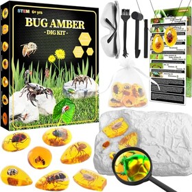 Bernstein Ausgrabungsset für Kinder ab 6 7 8 9 10 11 12 Jahren, Fossilien Ausgrabungsset Kinder mit 7 Künstliche Insektenfossil