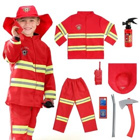 AYBUY Feuerwehr Kostüm Set für Kinder, Feuerwehr Rollenspiel Set mit Spielzeug-Feuerlöscher, Waschbares Kostüm Feuerwehrmann fü