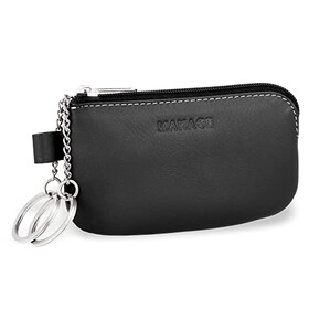 MANAGE Leder Schlüsseletui Schwarz mit Münzfach und Schlüsselring - Schlüsselmäppchen mit Reißverschluss Damen und Herren für S
