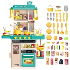 deAO Kinderküche “My Little Chef“ mit Sounds und Licht, Dampf, 50PCS kinderküche zubehör enthalt Geschirr, Lebensmitte, Spüle,
