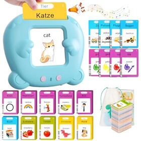 Winnrok Sprechende Lernkarten Deutsch Englisch,Sprachförderung Lernspielzeug für Kinder ab 2-6 Jahr,224 Wörter 112 Blätter Lern