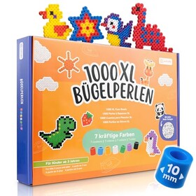 molinoRC Große Bügelperlen 10mm [1000 Stück] in 7 tollen KRÄFTIGEN Farben - mit 30+ VORLAGEN-Download - XL Bügelperlen - Steckp