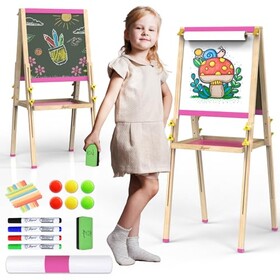 Joyooss Kunststaffelei für Kinder, verstellbares stehendes Holz-Zeichenbrett für Kleinkinder, doppelseitig, trocken abwischbar,