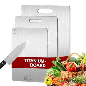 3 Stück Titan Schneidebrett, Edelstahl Titanium Cutting Board, BPA-freies Doppelseitiges Lebensmittel Grade Schneidebrett, Tita
