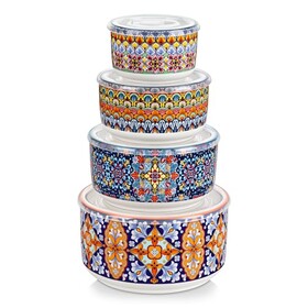 vancasso Suppenschüssel Set 4er, SIMI Salatschüssel mit Deckel, Keramikschüssel mit Deckel, Suppenschalen, Müslischale für Mitt