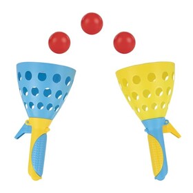 Idena 40251 - Fangballspiel XXL mit 2 Fangbechern, inkl. 3 Bällen, Ballspiel für Garten, Park und Strand, Gelb/Blau