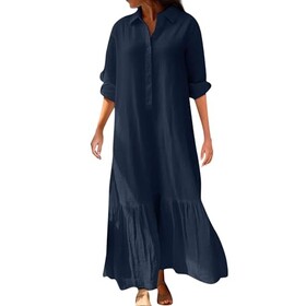 Kleider für den täglichen Gebrauch, Leinen, Maxikleid mit Tasche, langärmelig, Sommer, lässig, fließend, Strandkleid, dunkelbla