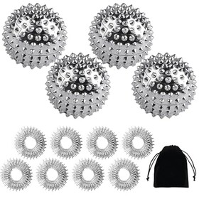 4 Stück Igelball Massage + 8 Stk Akupressur Ring Finger, Skills Borderline Set, Magnetic Acupressure Balls, Magnetische Spiked