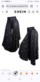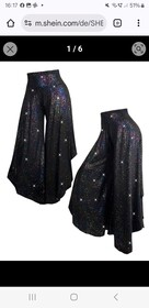 SHEIN Clasi Damen Große Größen Hose mit metallischem Grafikdruck und asymmetrischem Saum, weites Bein, Glitzerhose Damen