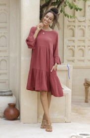 Tunikakleid aus doppelter Gaze aus Baumwolle in einem Cranberry-Farbton, "Cranberry-Trends"
