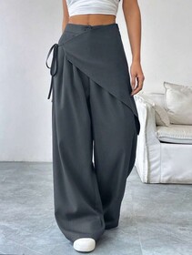 Damen einfarbige Loose Lässig Hosen mit Kreuz-Wickel-Twist Taille