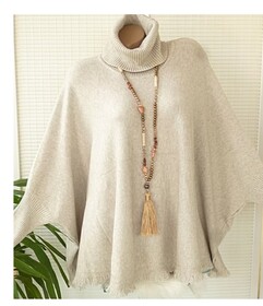 Oversize Poncho Pullover mit weiten Rollkragen und Fransen