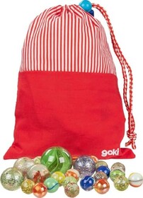 goki 63924 Murmelbeutel mit 50 bunten Glasmurmeln im Baumwollbeutel – inkl. Spielanleitung, ideal auch als Strandspielzeug