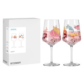 RITZENHOFF 8106003 Cocktail-Glas 2er Set 600 ml, Serie Tierisch glücklich, 2 Stück mit Katzen Motiv bunt - Made in Germany