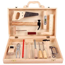 Kinder Werkzeugkasten aus Holz ab 3 Jahre - Werkzeugkoffer Mit Zubehör, Holzspielzeug, Motorikspielzeug - Geschenk für 3-6 Jähr