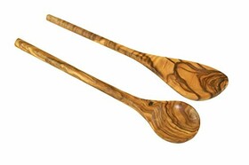 2 Kochlöffel - Set aus Olivenholz - rund + mit Ecke