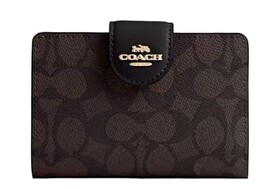 COACH Geldbörse mit Reißverschluss, mittelgroß, Leinen, Walnuss/Schwarz