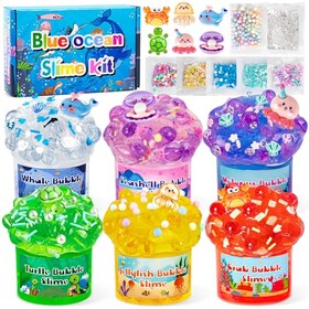 FGZU 6 Stück Clear Slime Set, Ozean Knuspriger Schleim Kinder, Superweich und Nicht Klebend, Stressabbau Sensorik Spielzeug Ges
